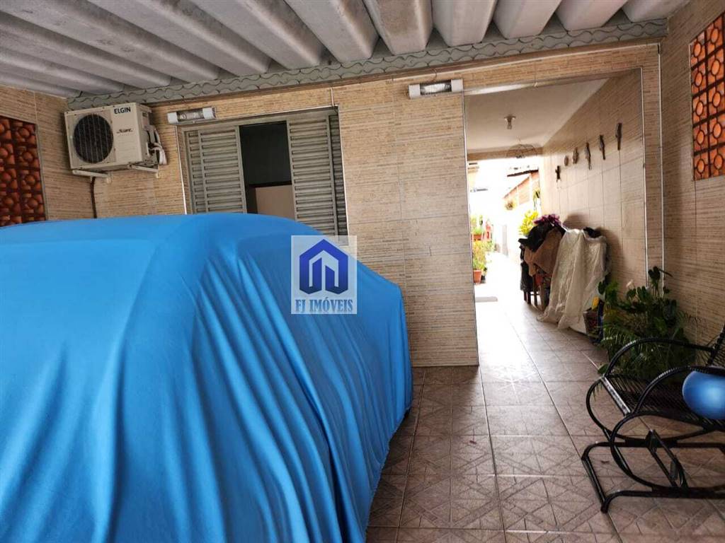 A casa tem vaga de garagem coberta pra um carro, corredor lateral, quintal nos fundos.
